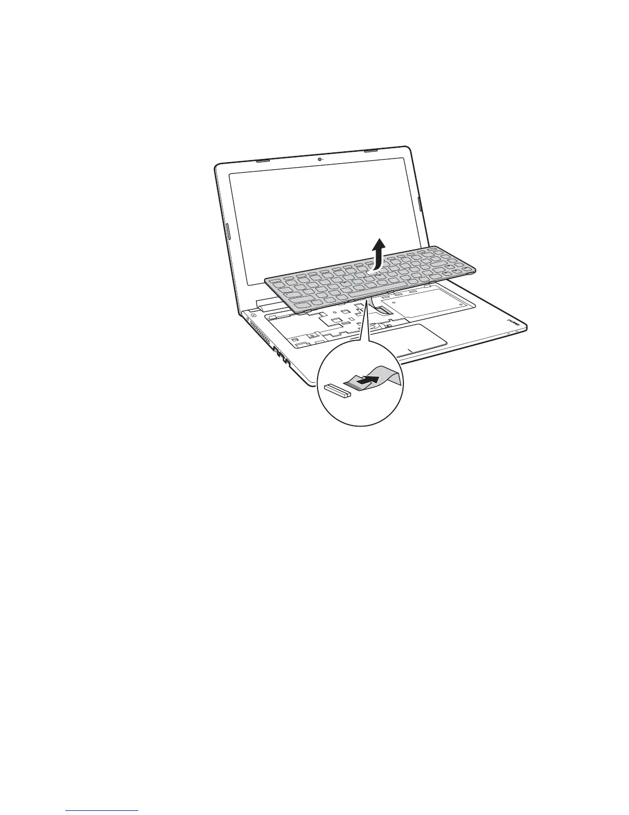 Lift the keyboard a little , and then detach the connector in the direction