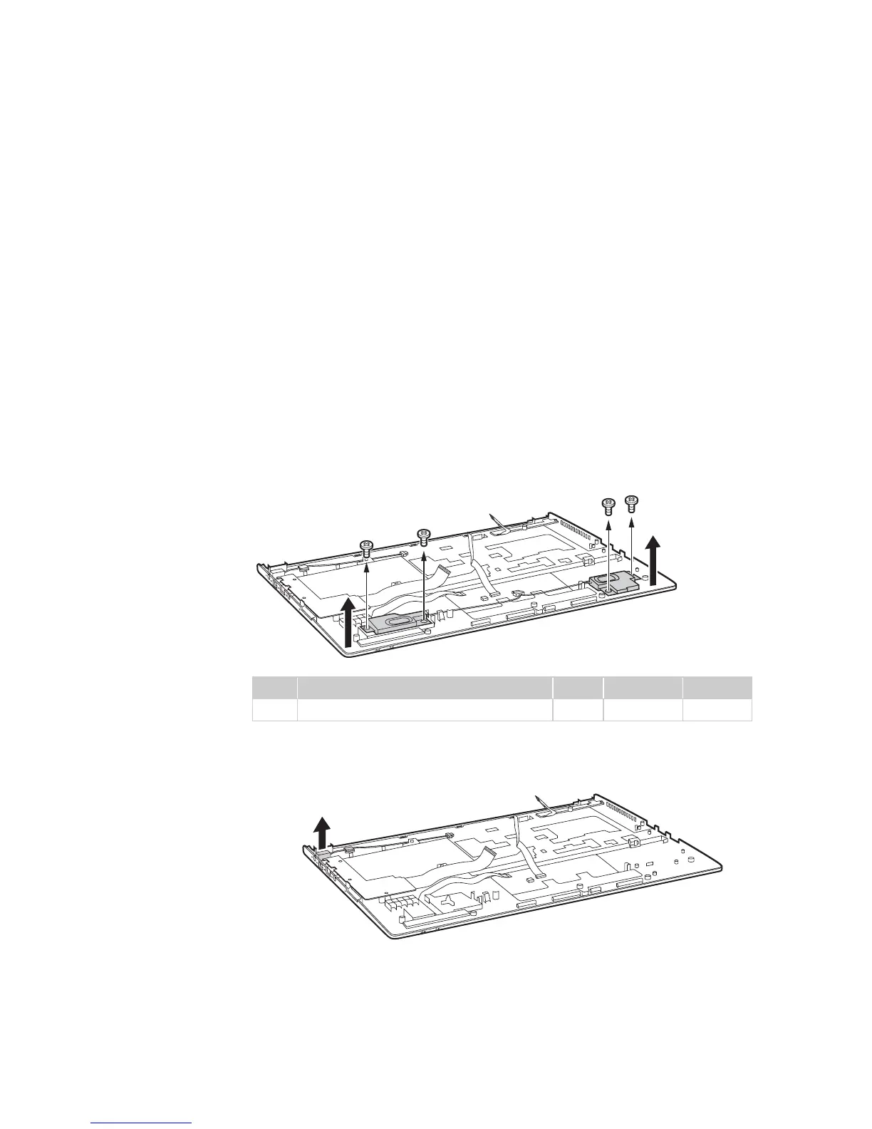 Remove four screws , and then remove the speakers in the direction shown