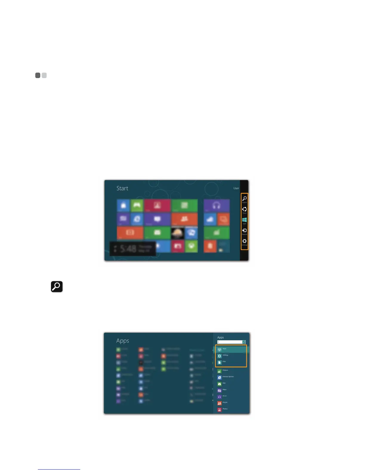 • Move the cursor to the upper-right or lower-right corner until the charms