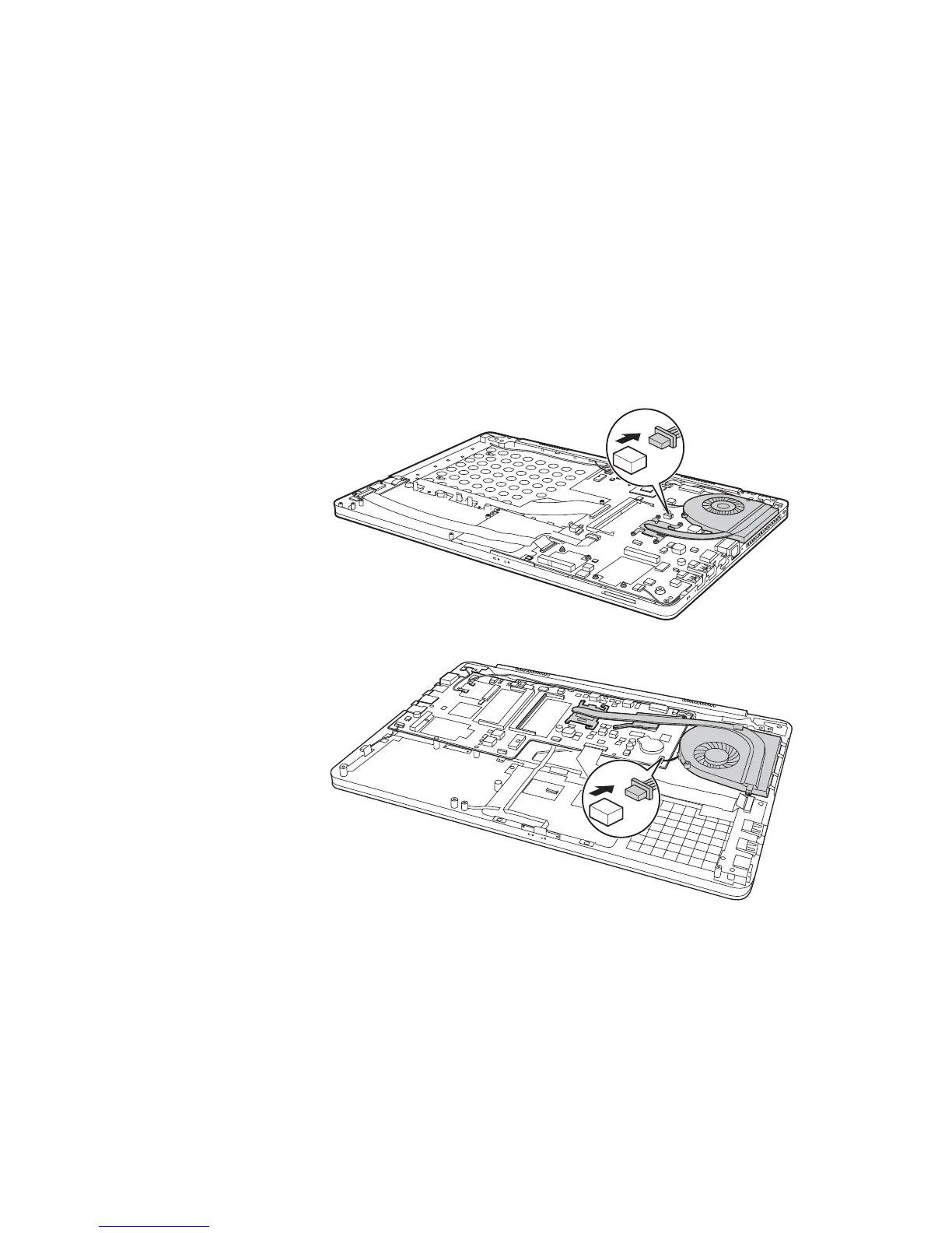Detach the fan connector in the direction shown by arrow .