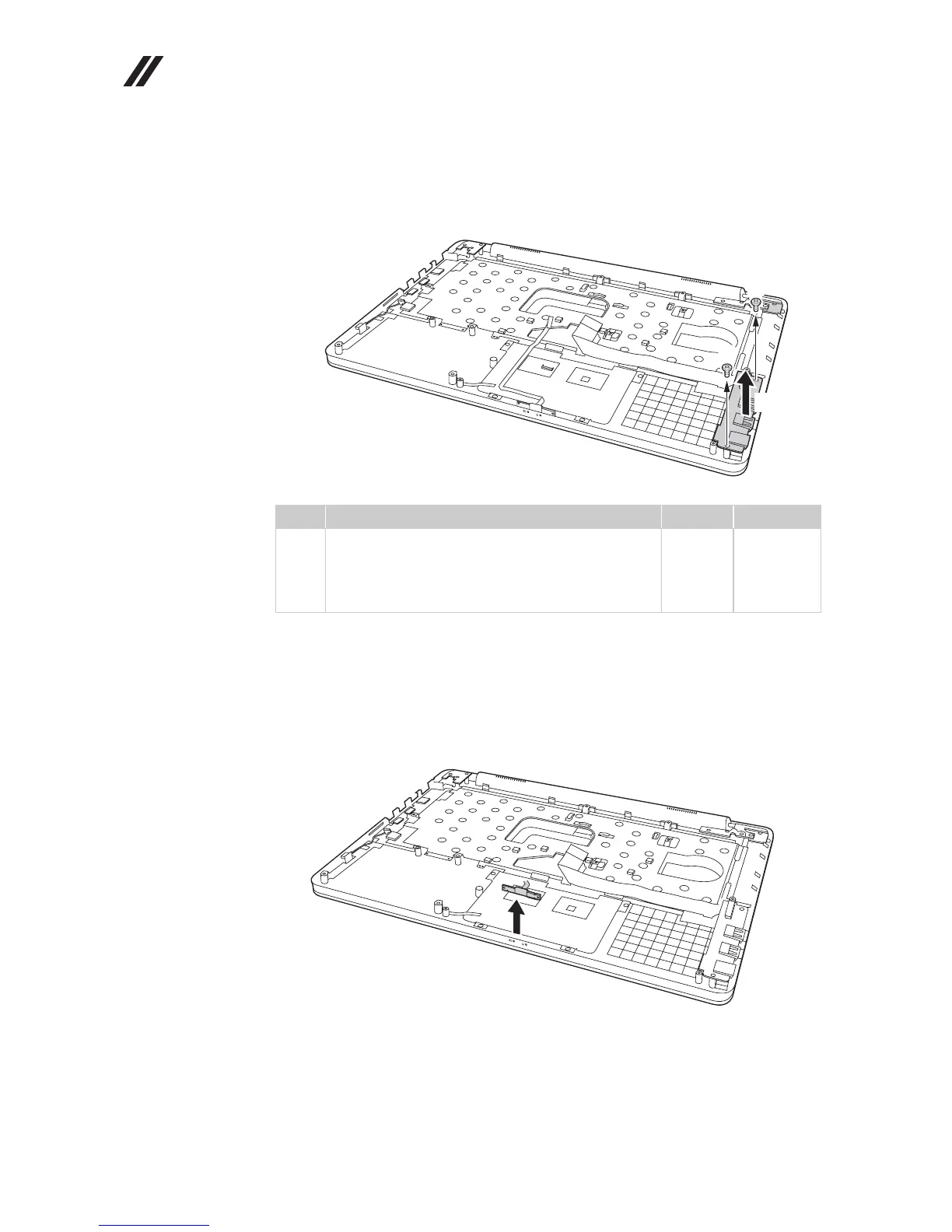 Remove two screws , and then remove the USB board in the direction shown