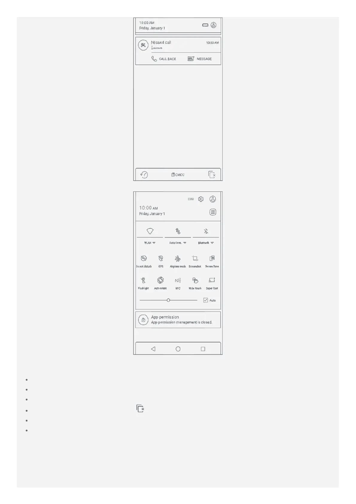To dismiss all notifications, tap at the bottom of the Notification panel.