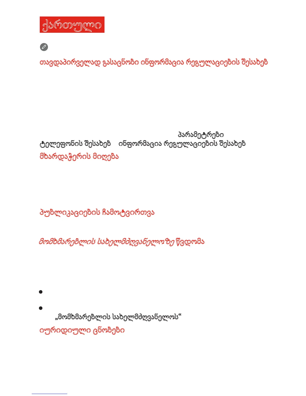 თავდაპირველად გასაცნობი ინფორმაცია რეგულაციების შესახებ