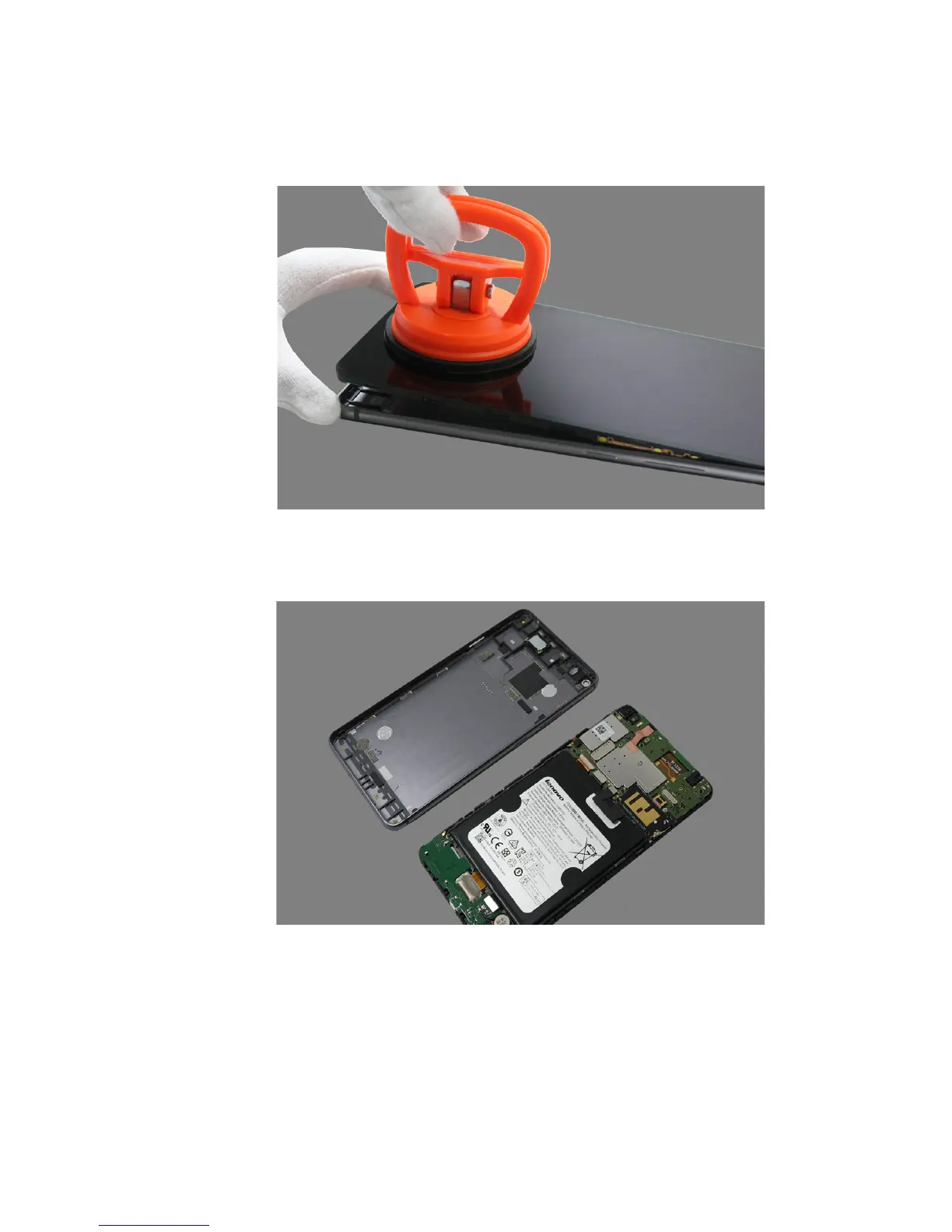 3. Hold the phone in one hand and use a suction cup to pull up the rear cover.
