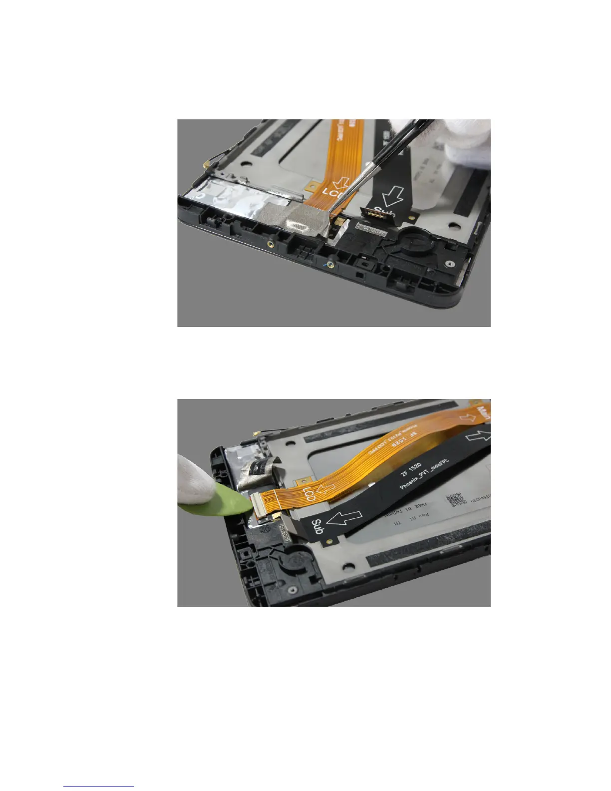Figure 11-4. Unlocking the connector of the LCD FPC on the front module (sub board side)