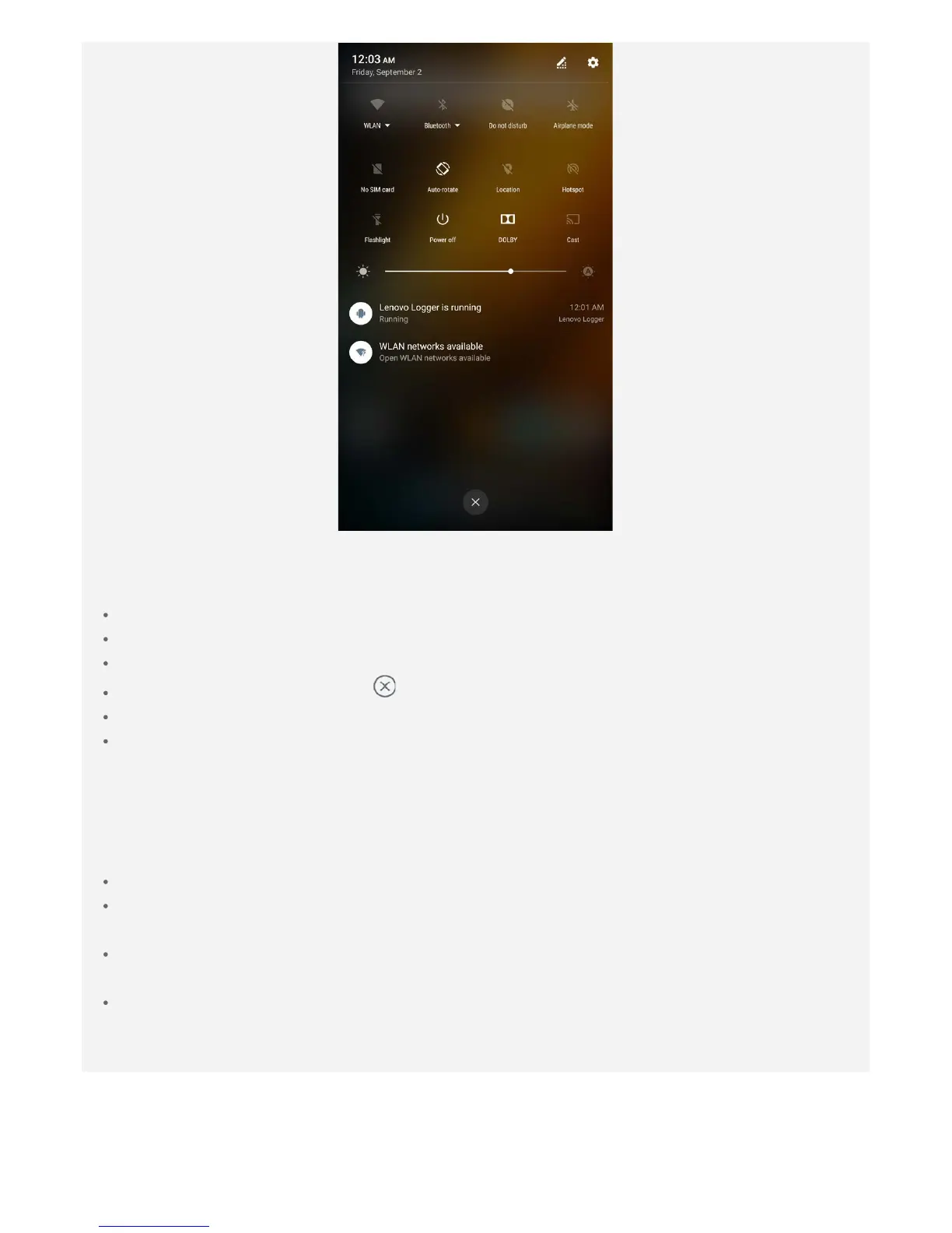 To close the Quick Settings panel, swipe up from the bottom of the screen.