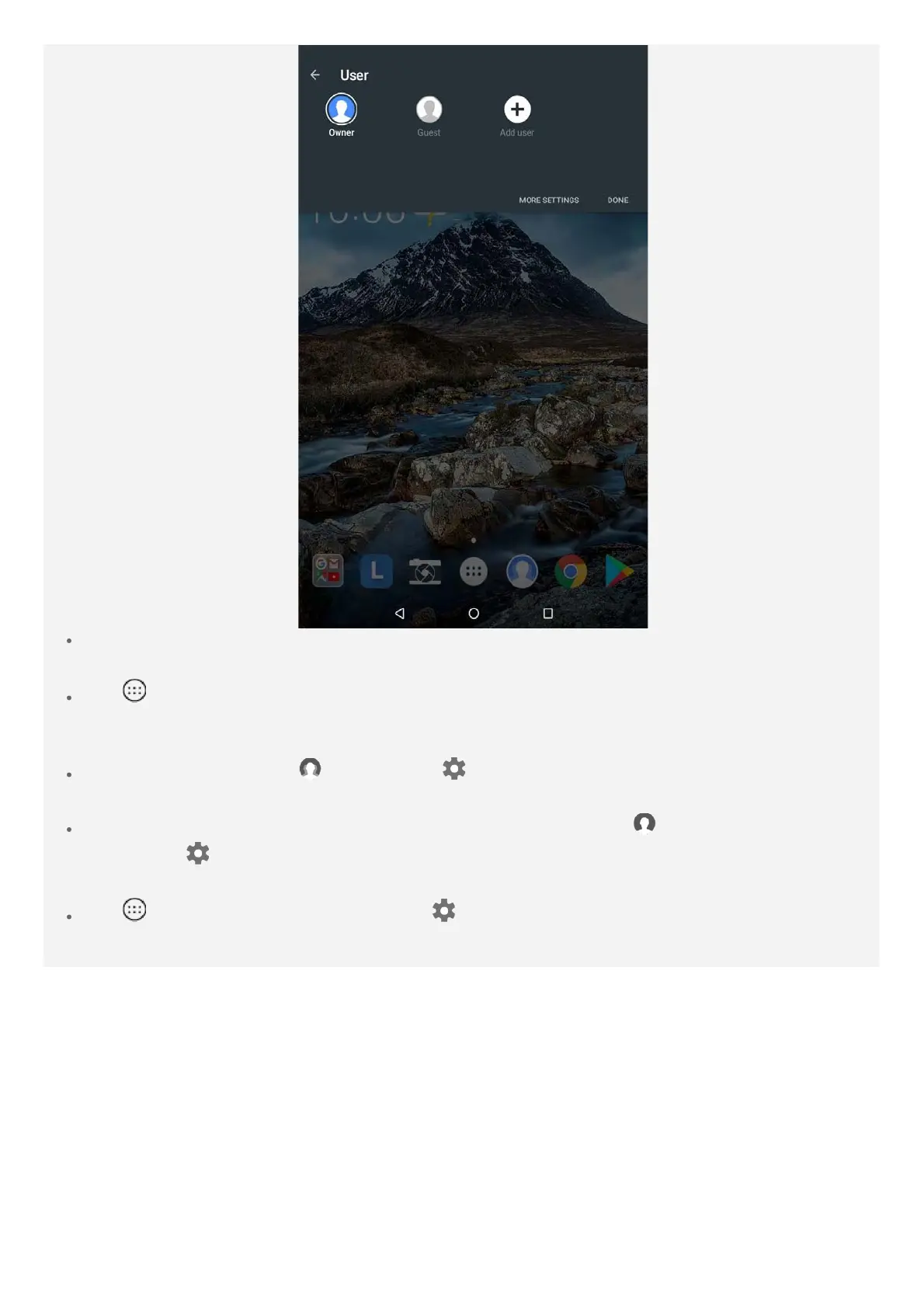 Tap > Settings > Users, select the user account you want to switch.