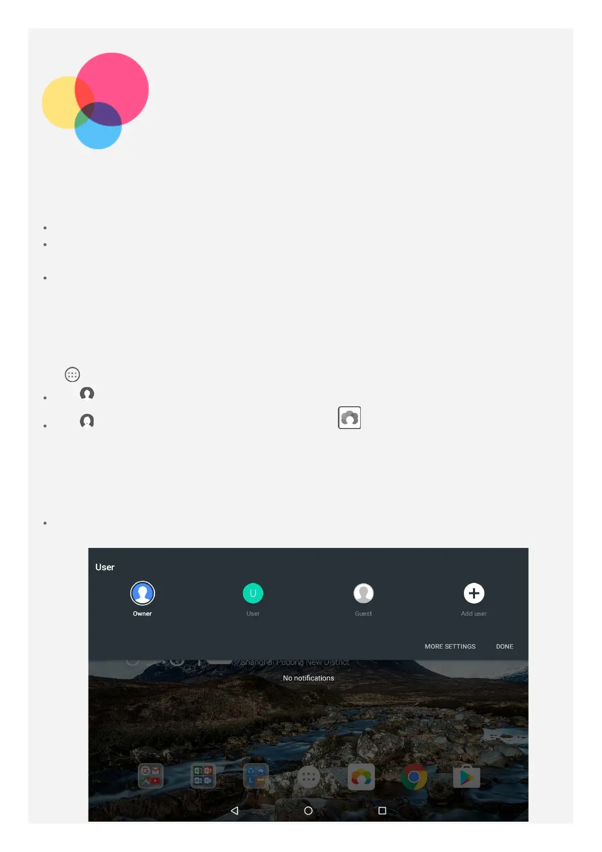 Guest: There is only one Guest account. A Guest has restricted access to the device. For