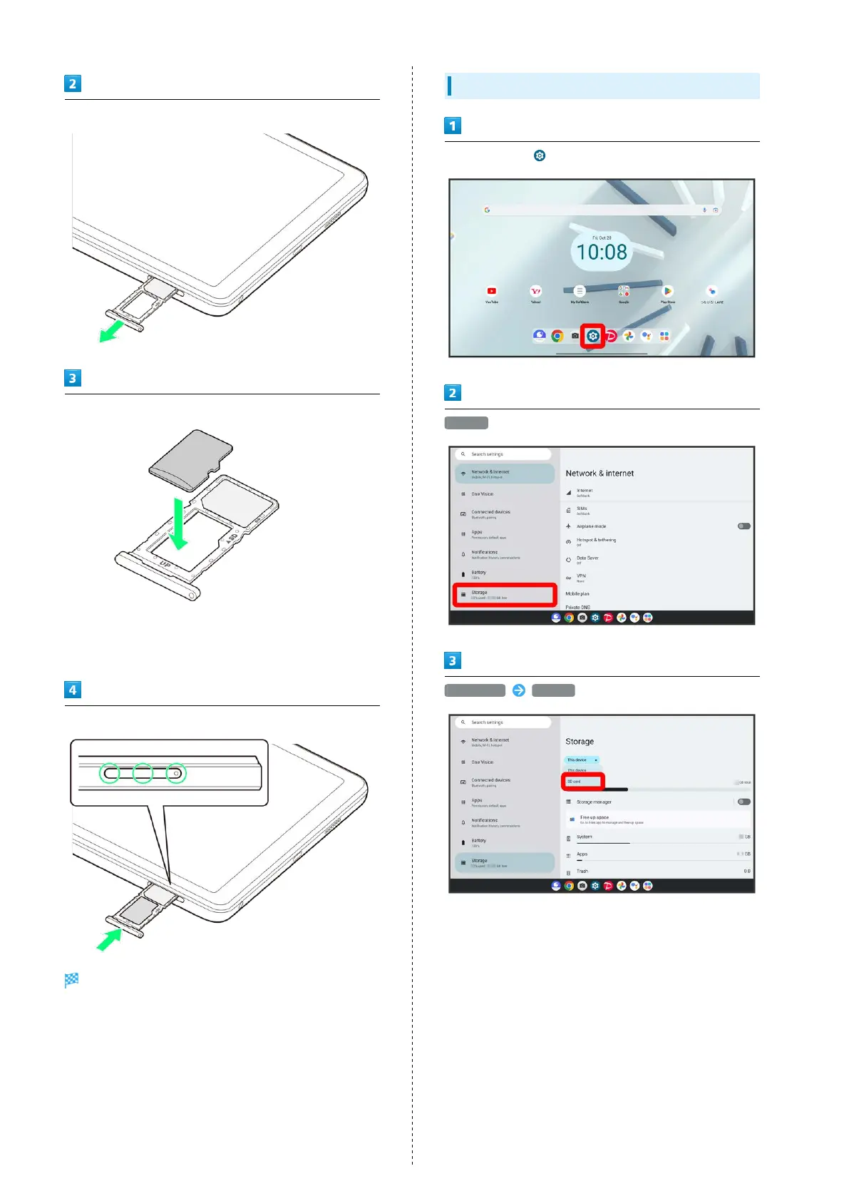 ・Make sure SD Card is in USIM/SD Card Tray securely.