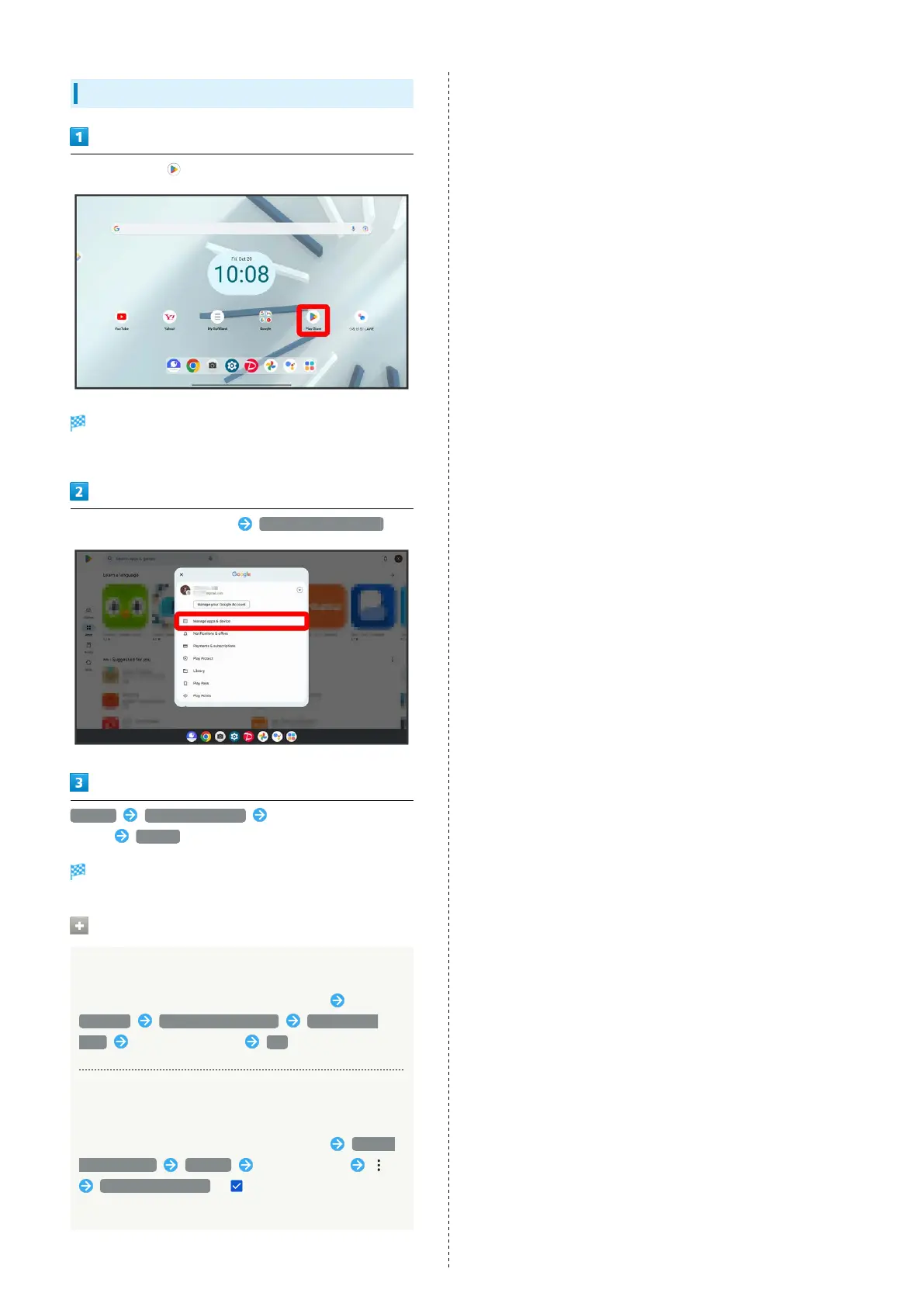 Tap account icon at top right Manage apps & device