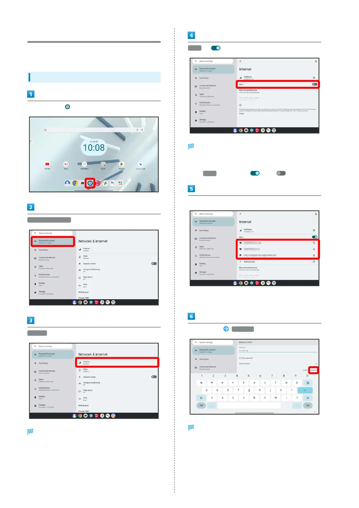 Tablet supports Wi-Fi (wireless LAN). Access the Internet via