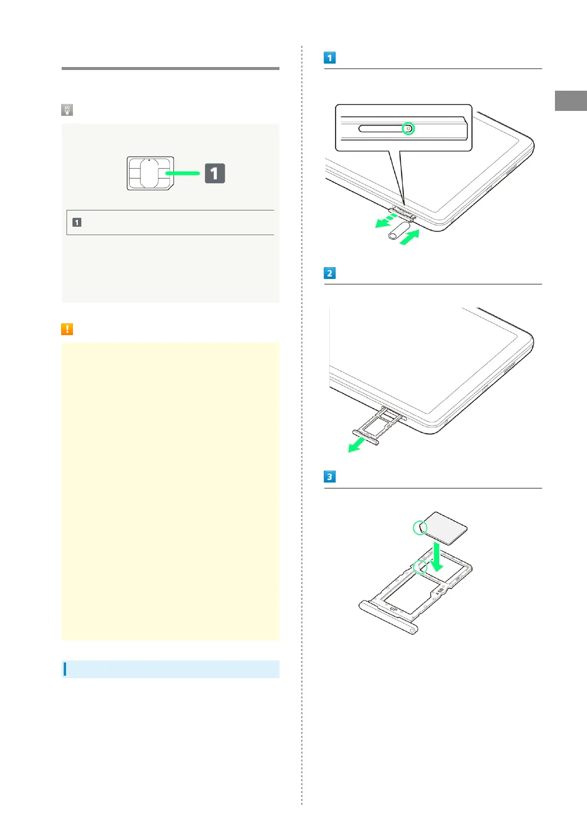 ・Place gently, noting orientation of USIM Card (notch/IC