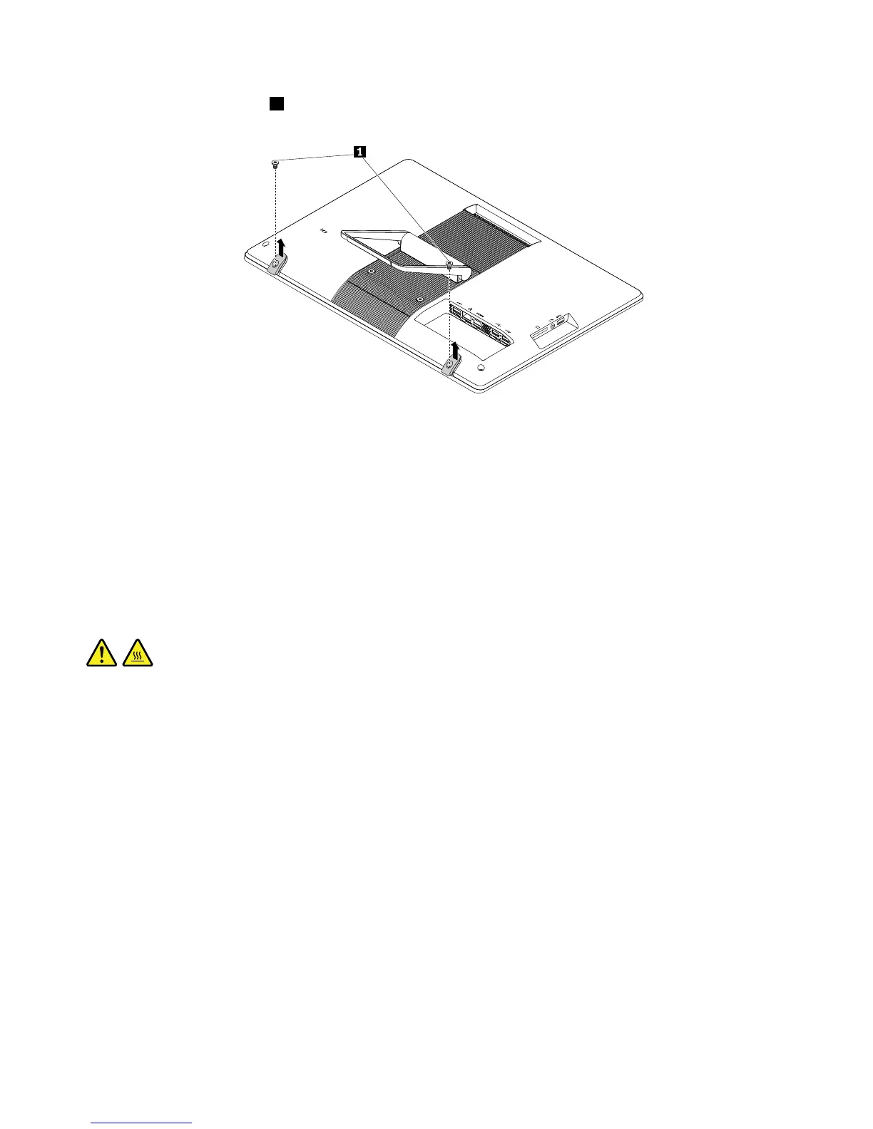 3.Removethetwoscrews1thatsecurethefeet.Then,liftthefeettoremovethemfromthecomputer.
