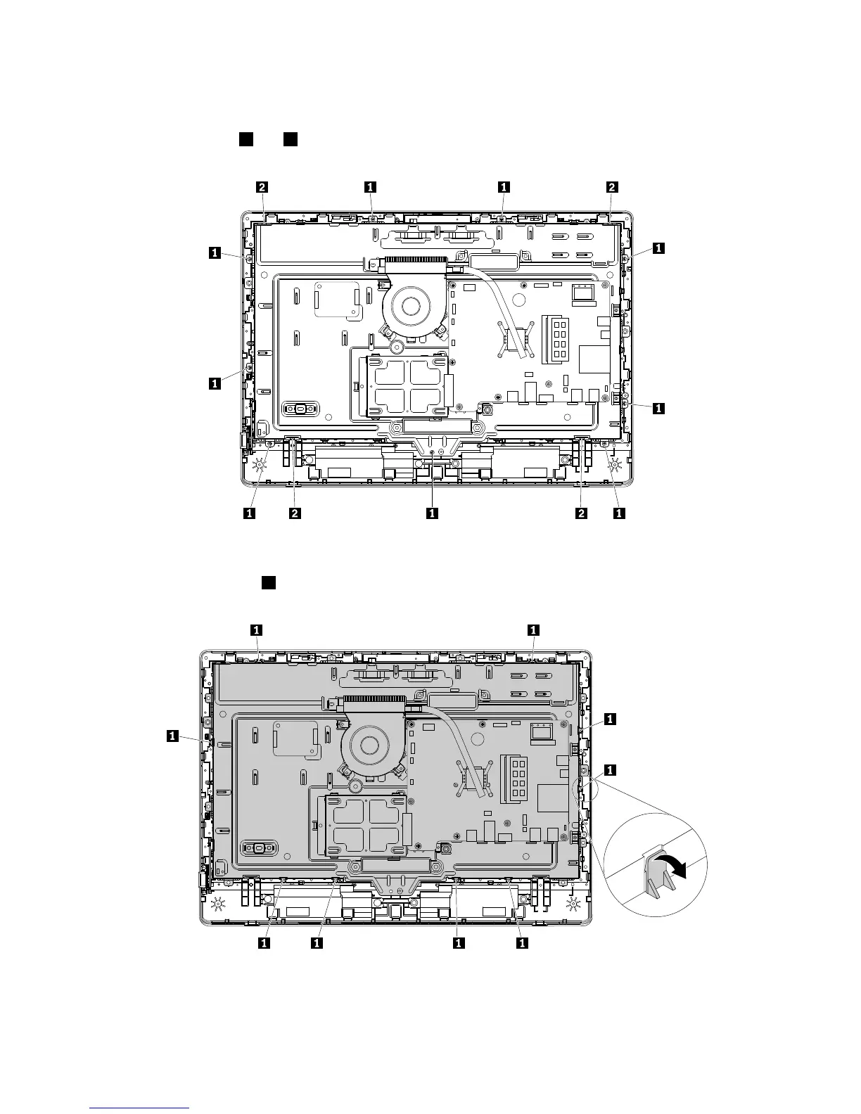 8.Removethescrews1and2asshownthatsecurethechassistotheLCDfrontbezel.