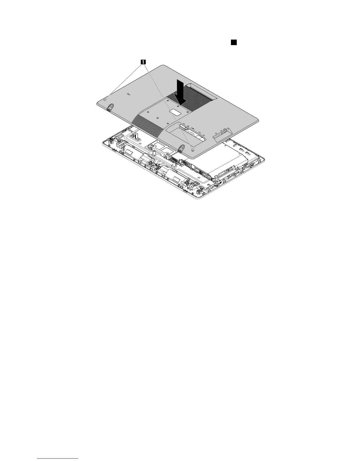 3.Positionthecomputercoverintoplaceandthentightenthetwoscrews1tosecurethecomputercover.