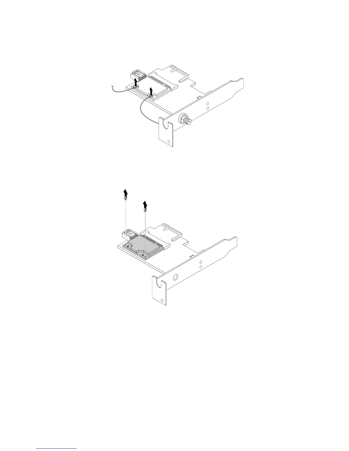 2.RemovethetwoscrewsthatsecuretheWiFicardmoduletotheWiFiadaptercard.