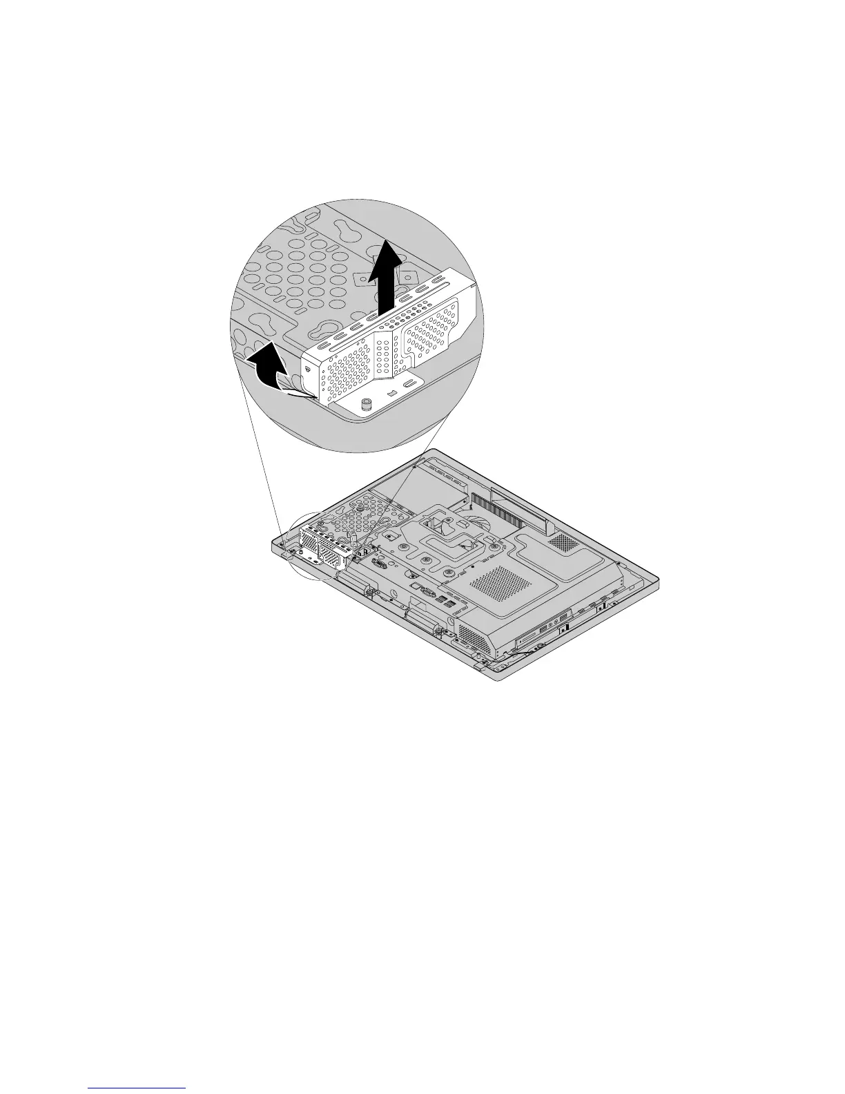 5.Pivotthehard-disk-driveEMIshieldasshowntoremoveitfromthehard-disk-drivebracket,andthen