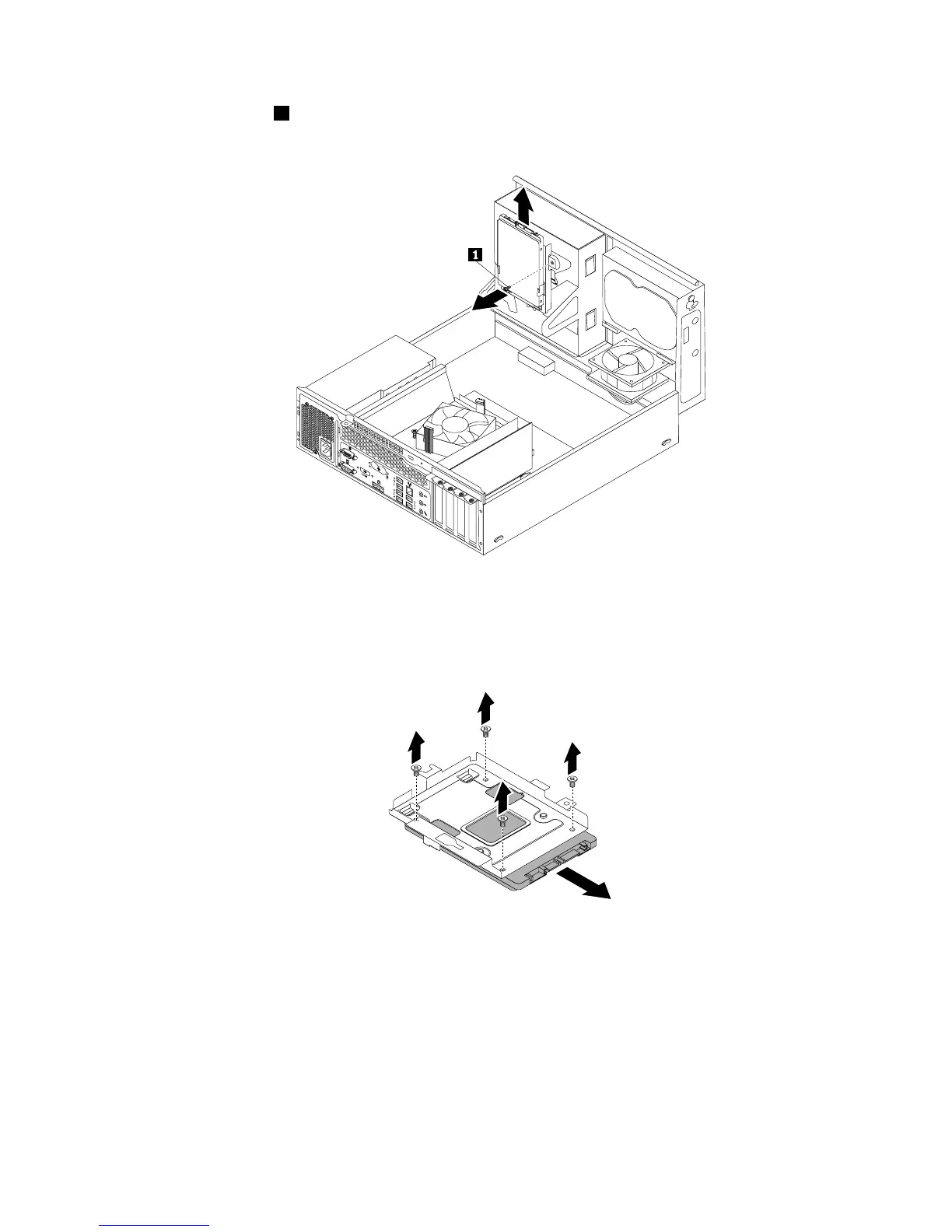 6.Removethescrew1andthencarefullyslidethesolid-statedrivebracketupwardtoremovethebracket