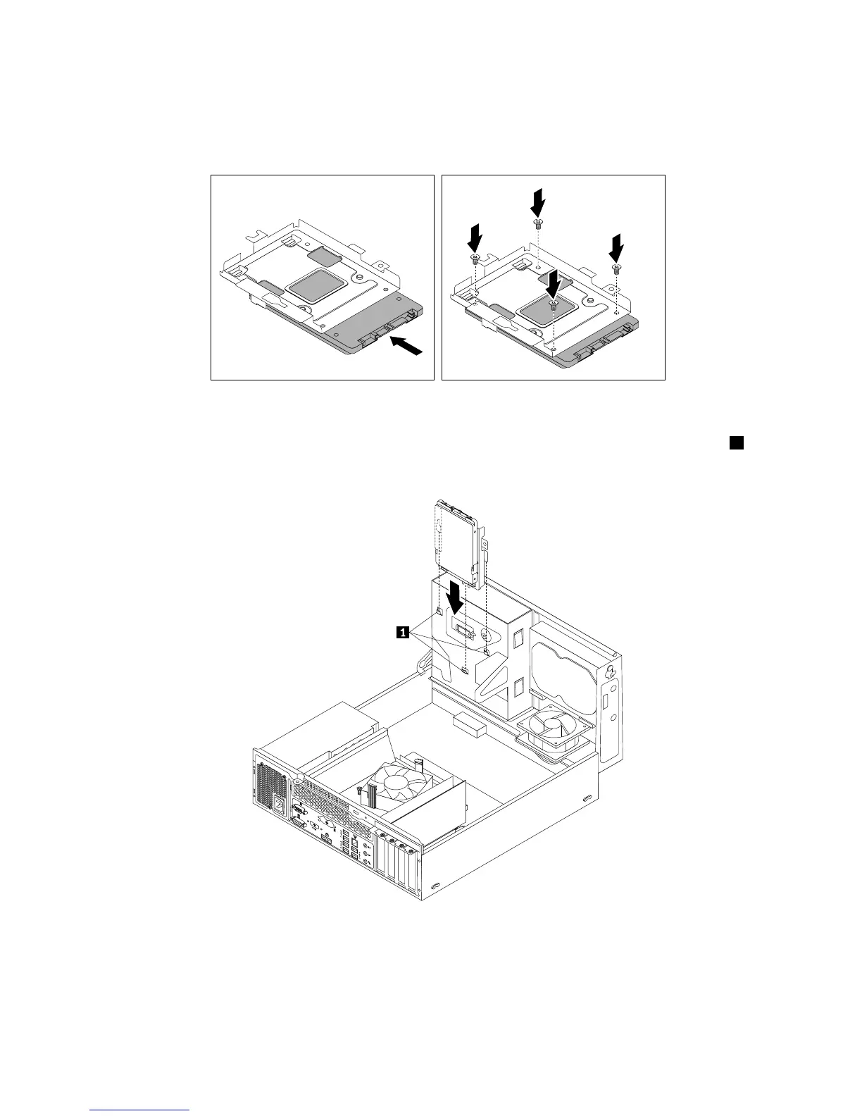 10.Carefullyslidethesolid-statedrivebracketdownwarduntilitissecuredbythethreeretainingclips1on
