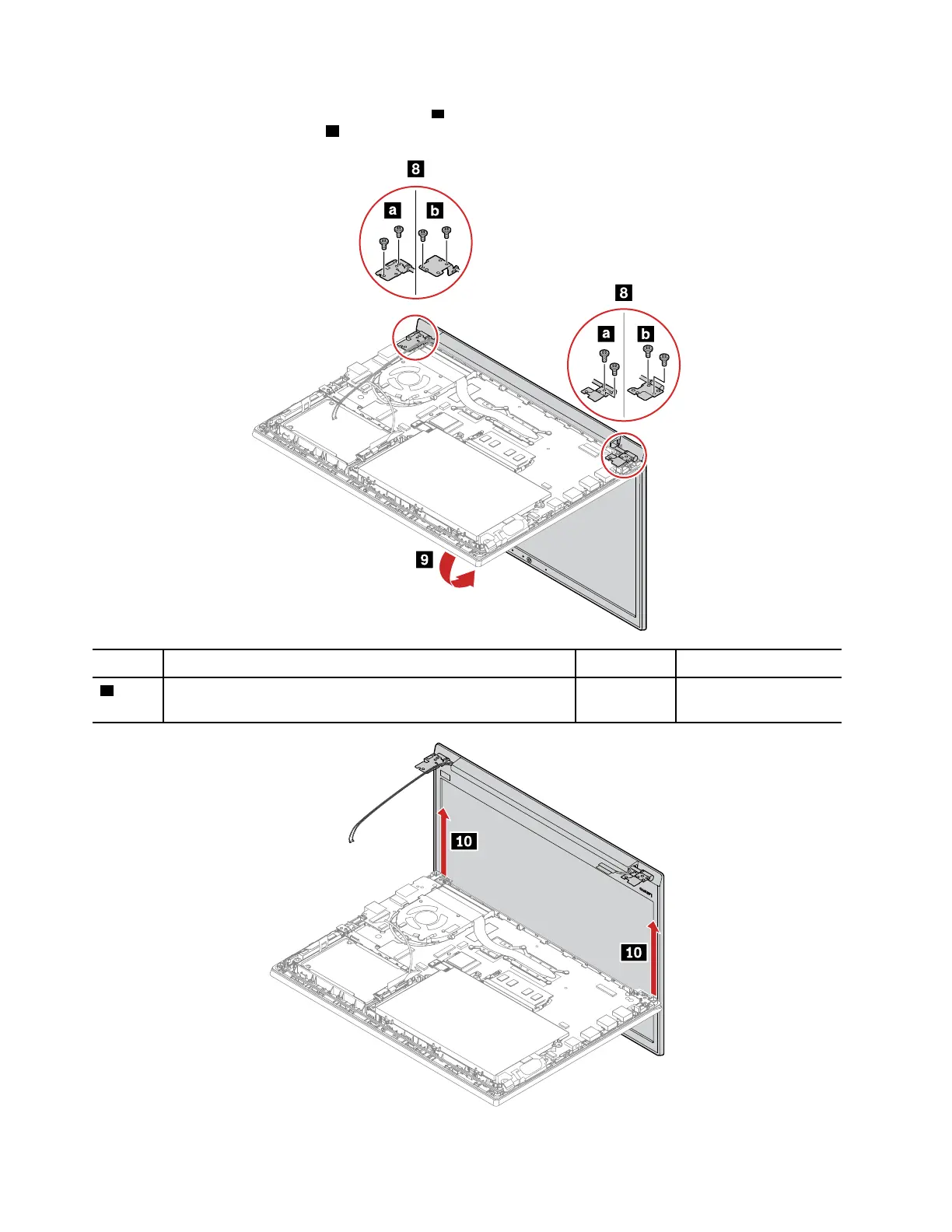 For ThinkPad E14/R14/ S3 Gen 2, please refer to a for removing the screws that secure the hinge.