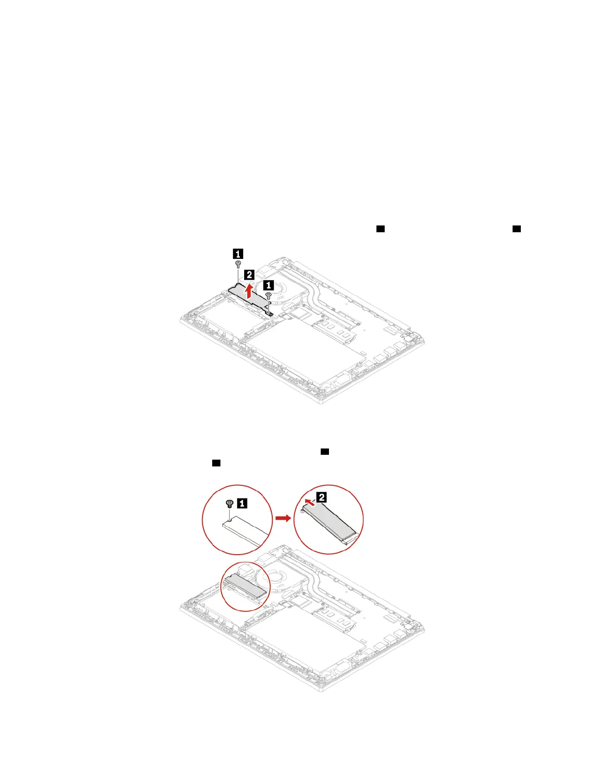6. Remove the screws that secure the long M.2 solid-state drive bracket