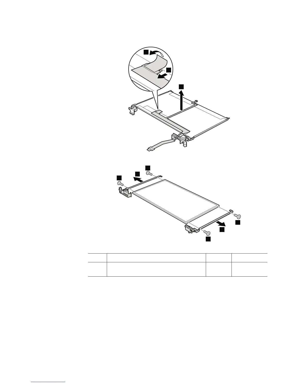 Table 35. Removal steps of hinges, LCD panel, LCD cable, and LCD rear cover