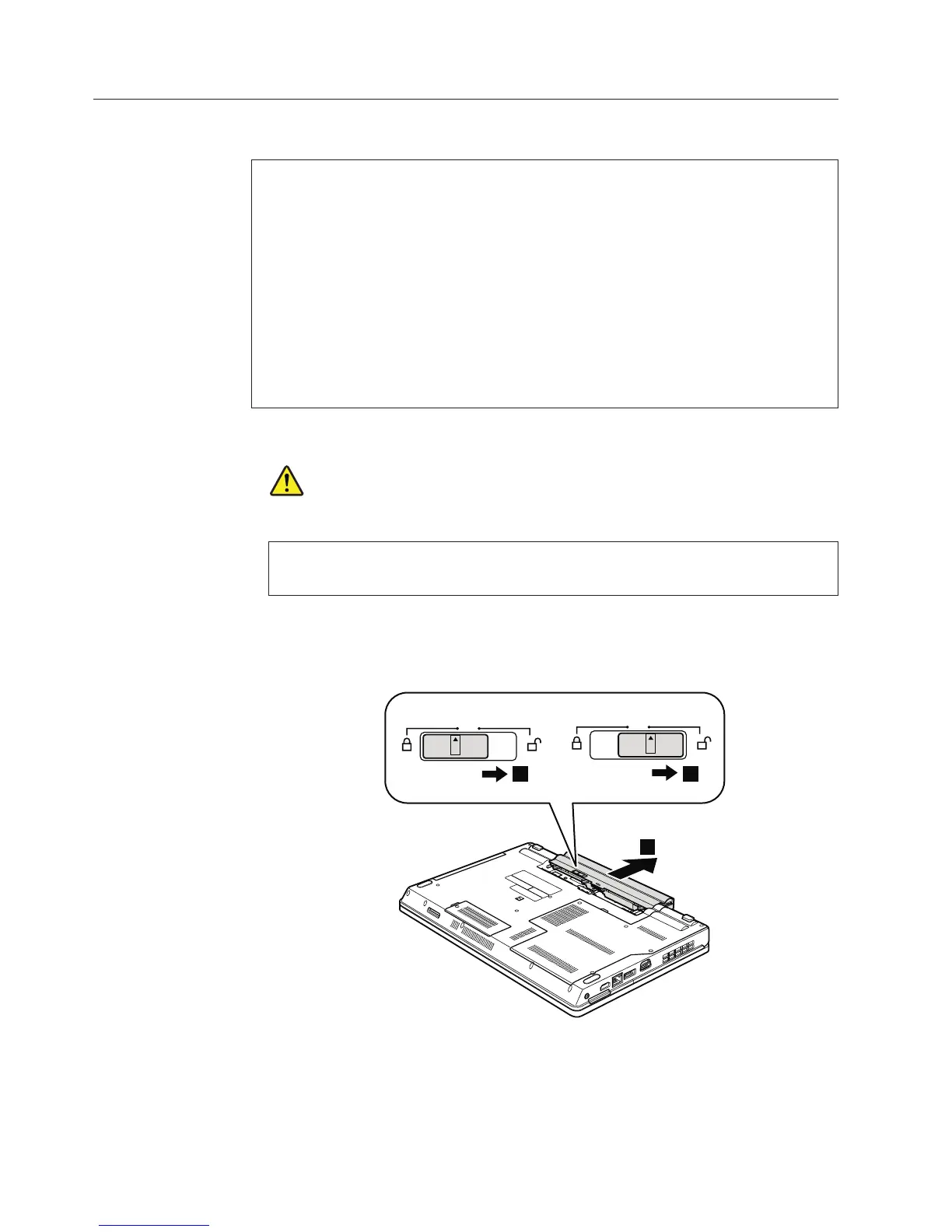 Unlock the battery latch 1. Holding the battery lock lever in the unlocked