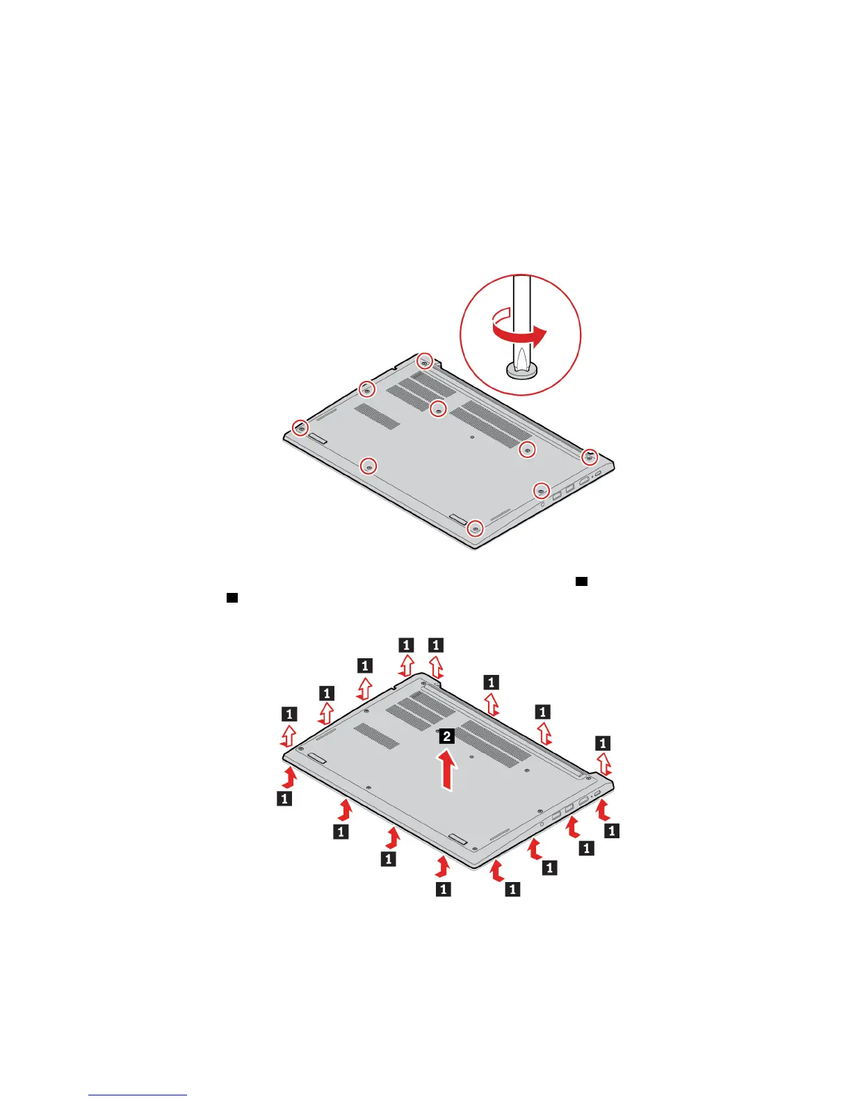 Note: Do not remove the base cover assembly when your computer is connected to ac power. Otherwise,