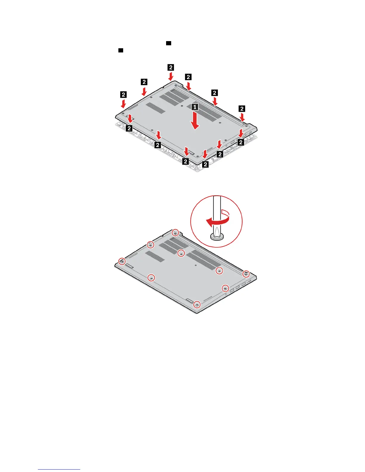 7. Tighten the screws to secure the base cover assembly.