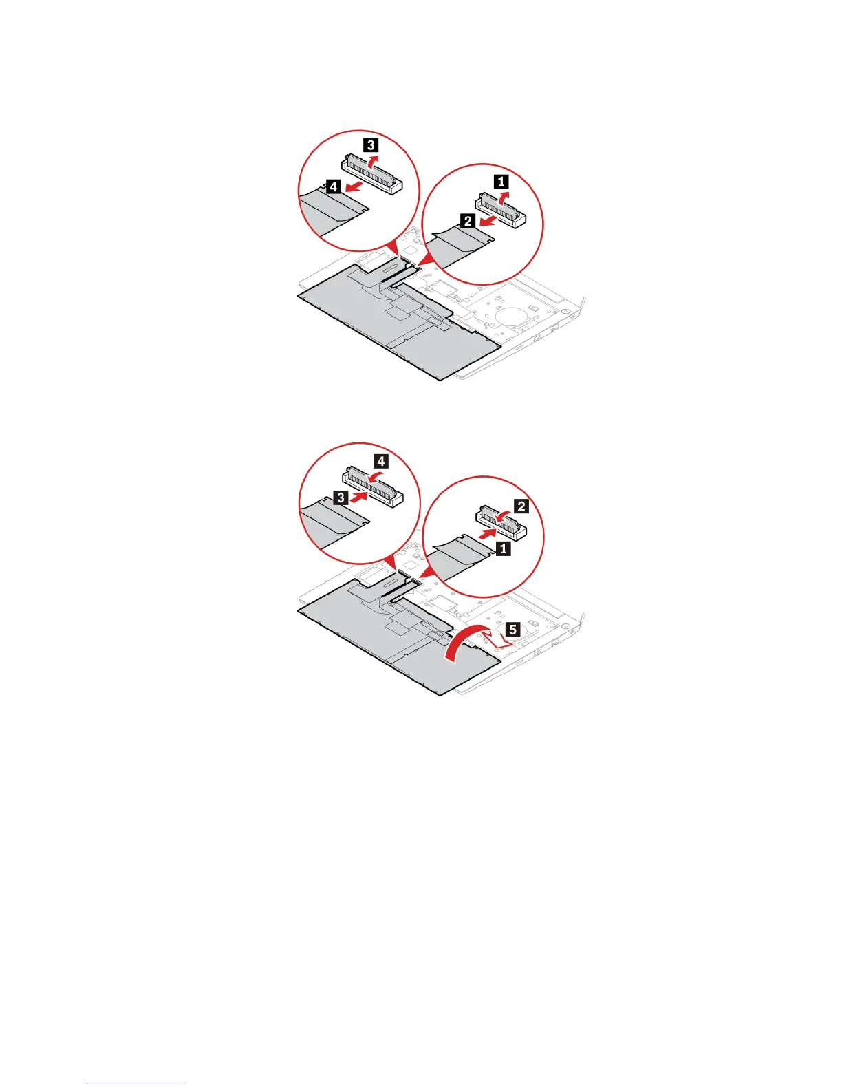 8. Put the keyboard on the palm rest as shown and detach the connectors. Then, remove the keyboard.