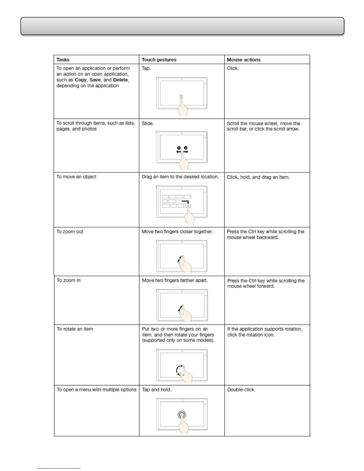 You can perform tasks by touching the Multi-Touch Screen or by using the mouse.