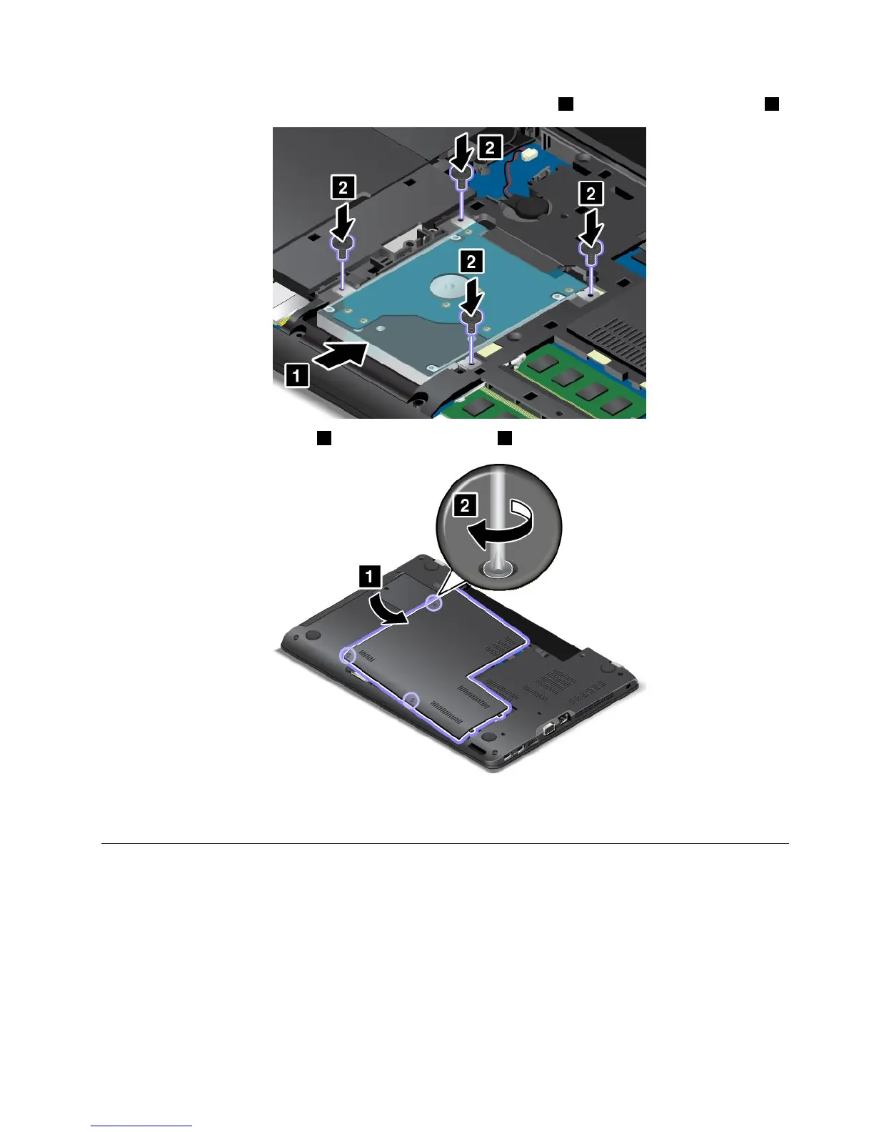 8.Slidethestoragedrivefirmlyintothebayuntilitisfirmlyconnected1,andthenreinstallthescrews2.