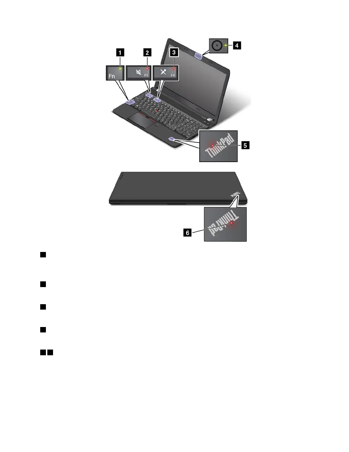 Theilluminateddots,oneintheThinkPadlogoontheouterlidofyourcomputerandtheotheronthepalm