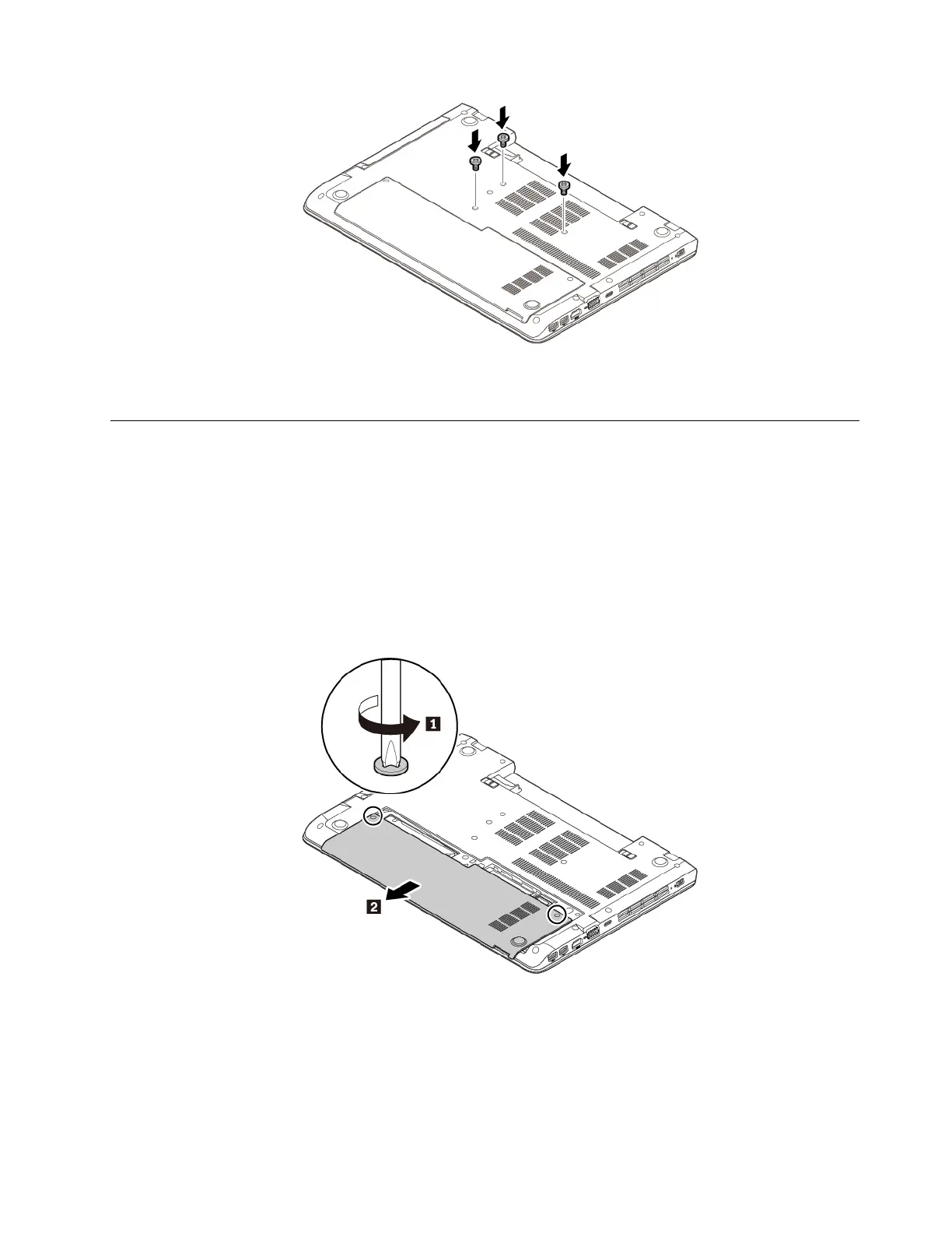 4. Loosen the screws that secure the bottom cover. Slide the bottom cover in the direction as shown by