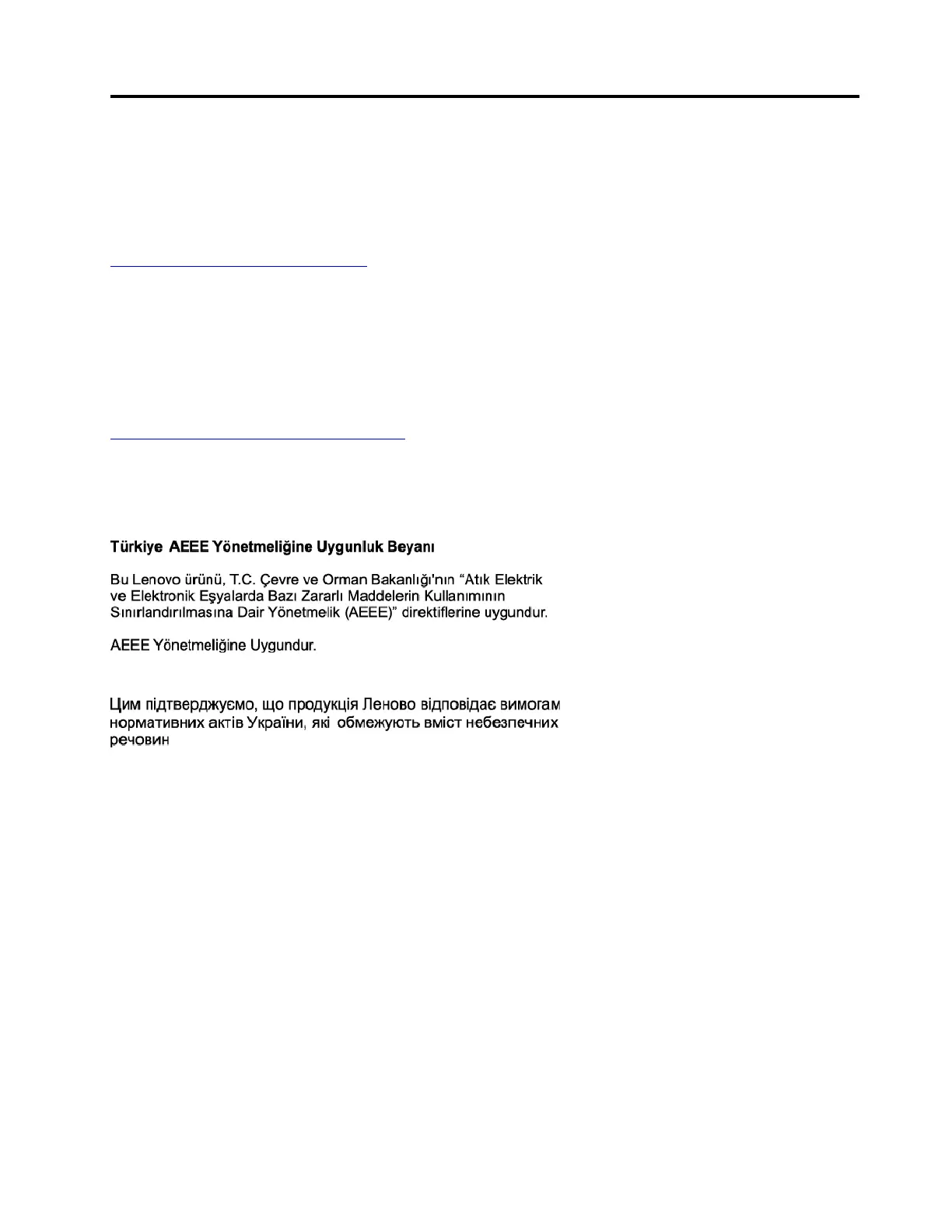 The Lenovo product meets the requirements of the Republic of Turkey Directive on the Restriction of the Use