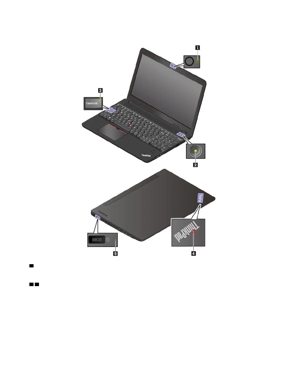 The indicator in the ThinkPad logo on the computer lid and the indicator in the power button show the
