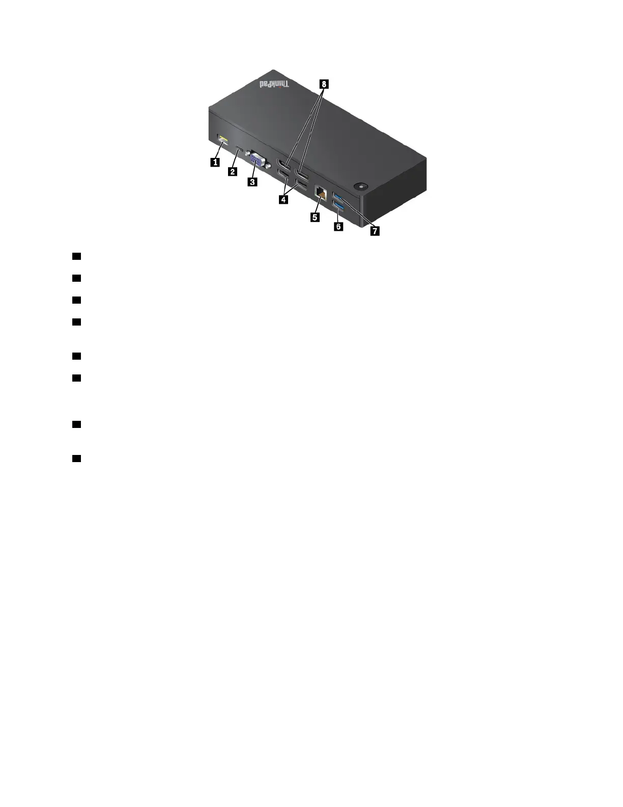5 Ethernet connector: Connect the dock to an Ethernet LAN with an Ethernet cable.