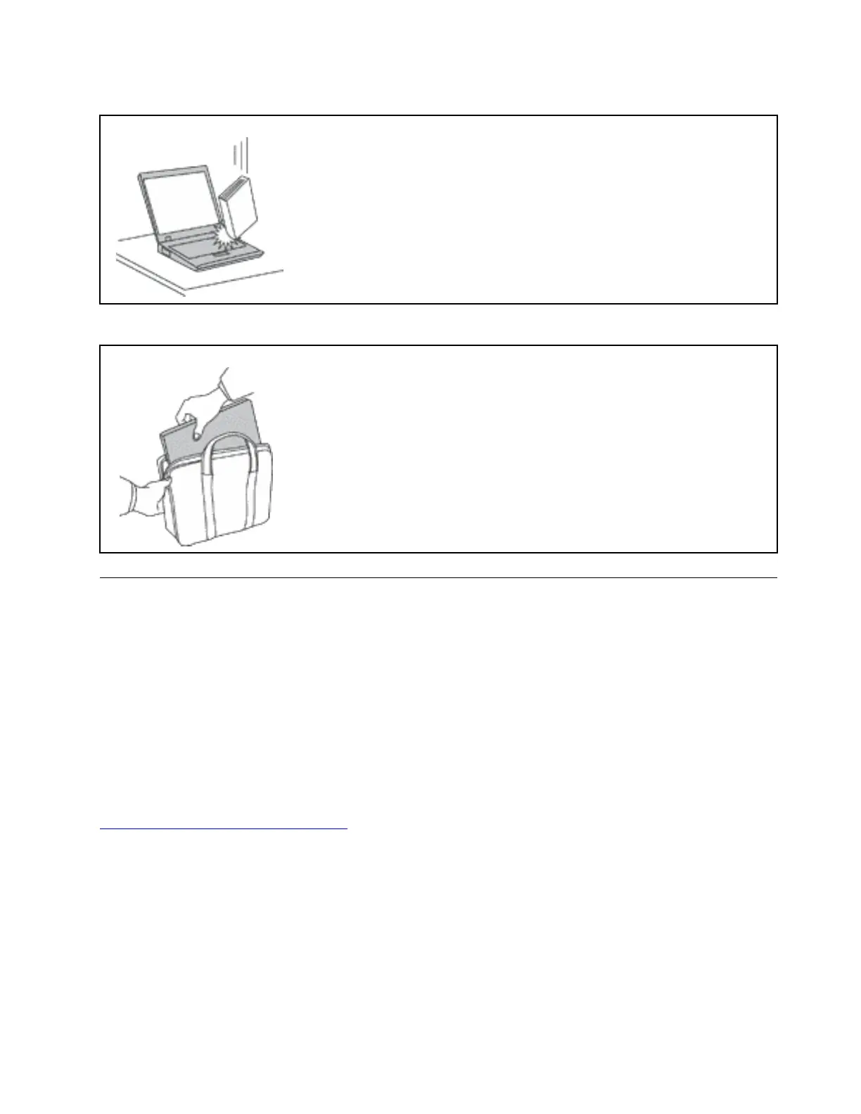 • Do not pack your computer in a tightly packed suitcase or bag.
