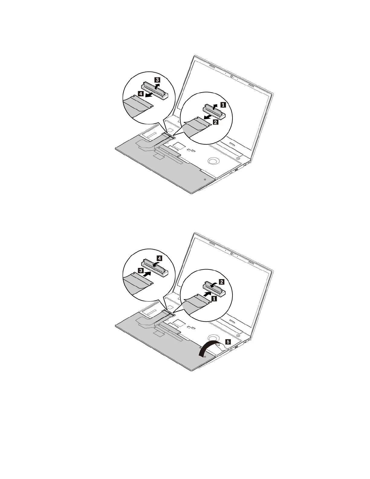 10. Put the keyboard on the palm rest as shown and detach the connectors. Then remove the keyboard.
