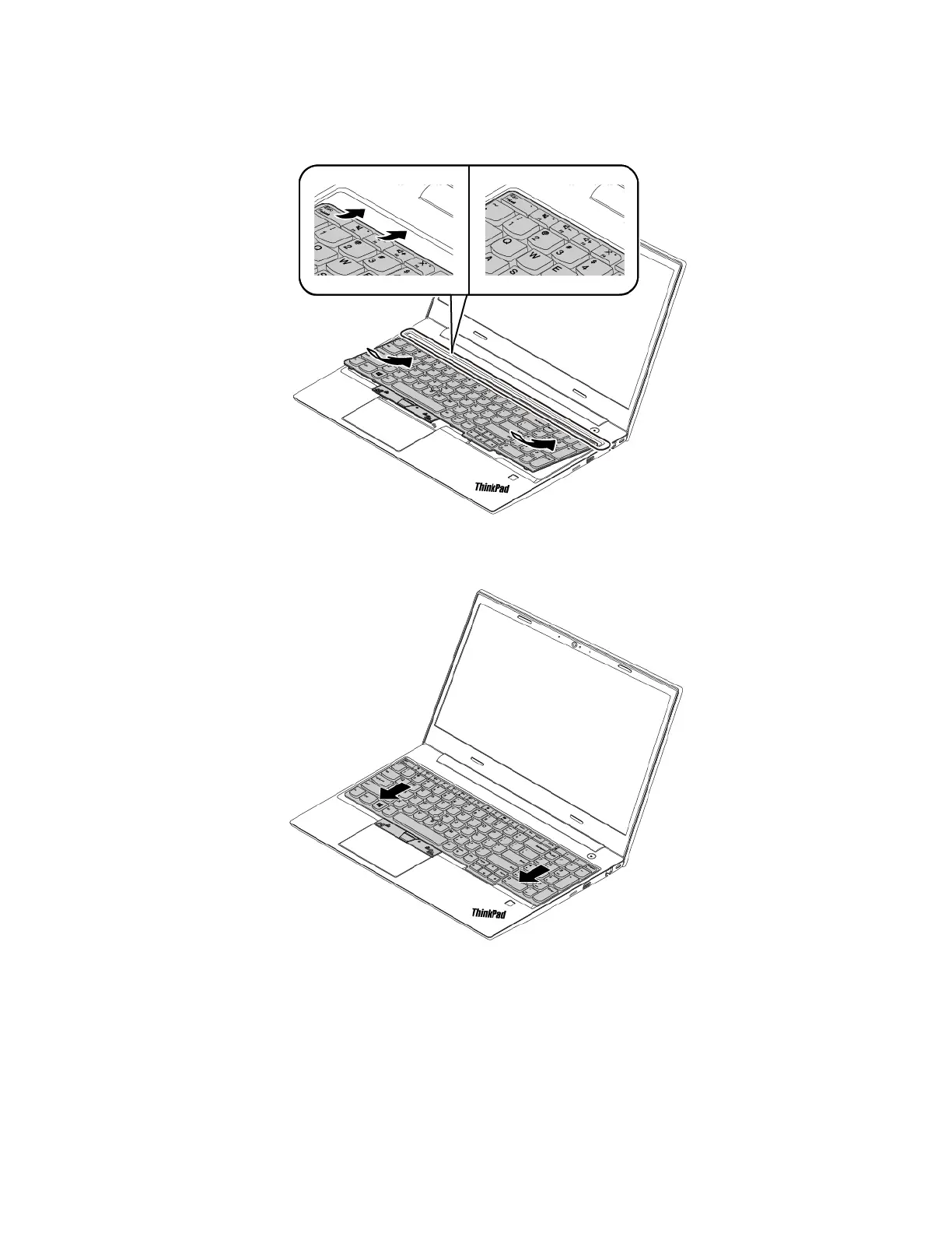 3. Slide the keyboard in the direction as shown by the arrows. Ensure that the latches are secured under