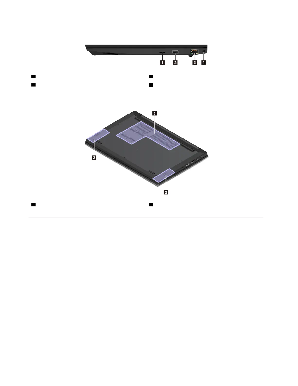 Lenovo ThinkPad E585 - Right-Side View; Bottom View; Locating Frus and Crus