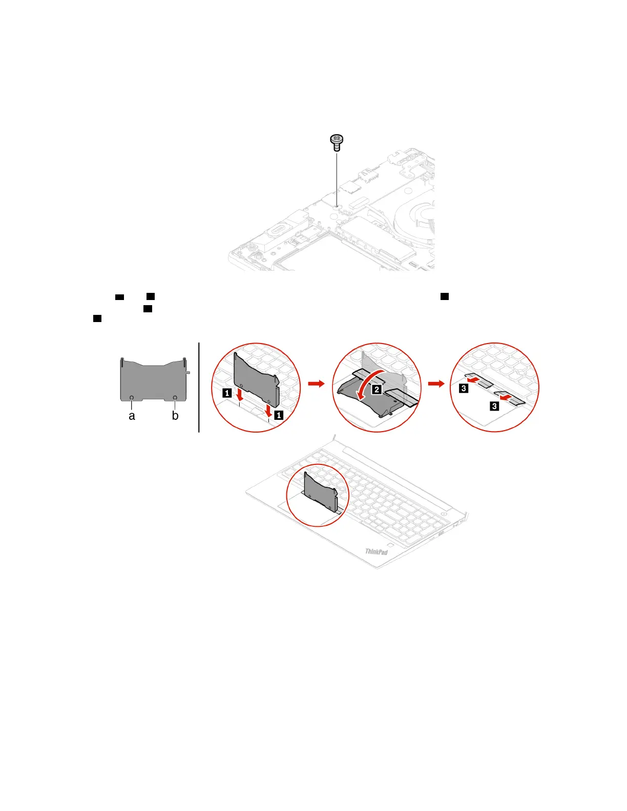 a and b into the slot between the TrackPoint buttons and the trackpad 1 . Slightly pivot the tool