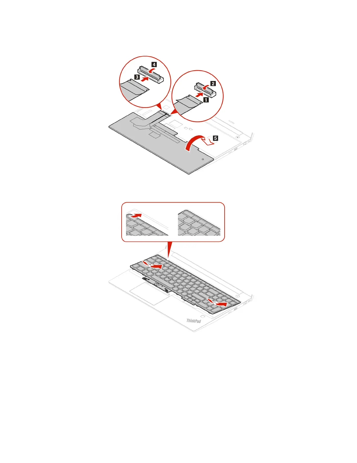 12. Attach the connectors and turn the keyboard over as shown.