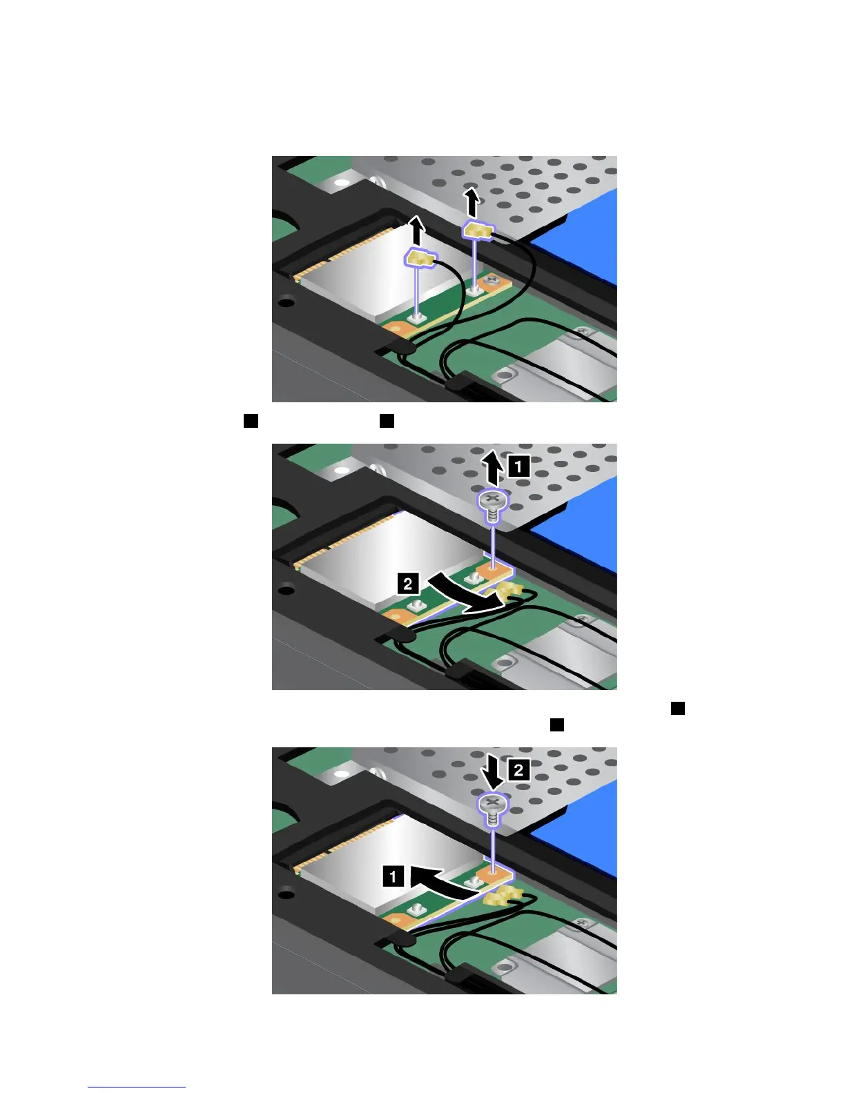 7.AlignthecontactedgeofthenewPCIExpressMiniCardwiththecorrespondingsocket1.Pivotthe