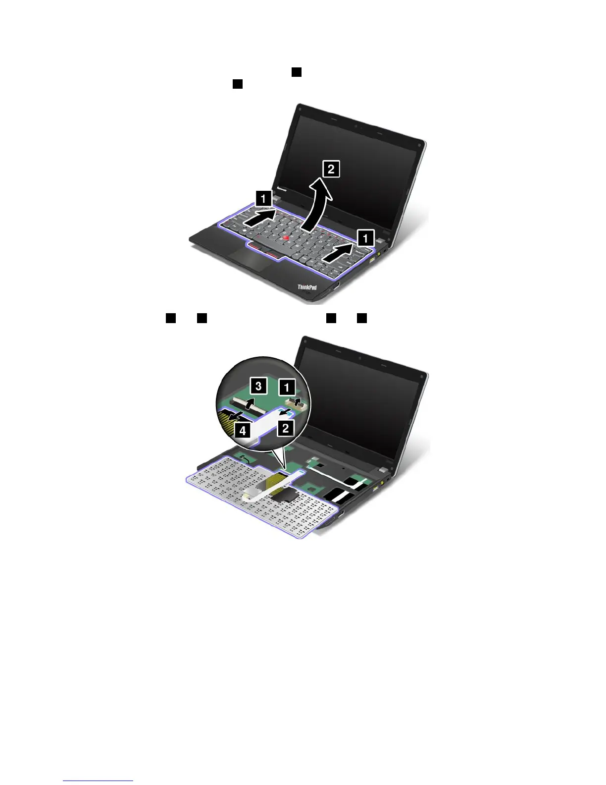 8.Removethecables2and4byippingtheconnectors1and3upwards.Removethekeyboard.