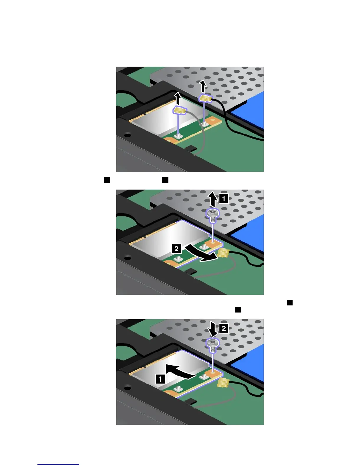 7.AlignthecontactedgeofthenewPCIExpressMiniCardwiththecorrespondingsocket1.Pivotthe
