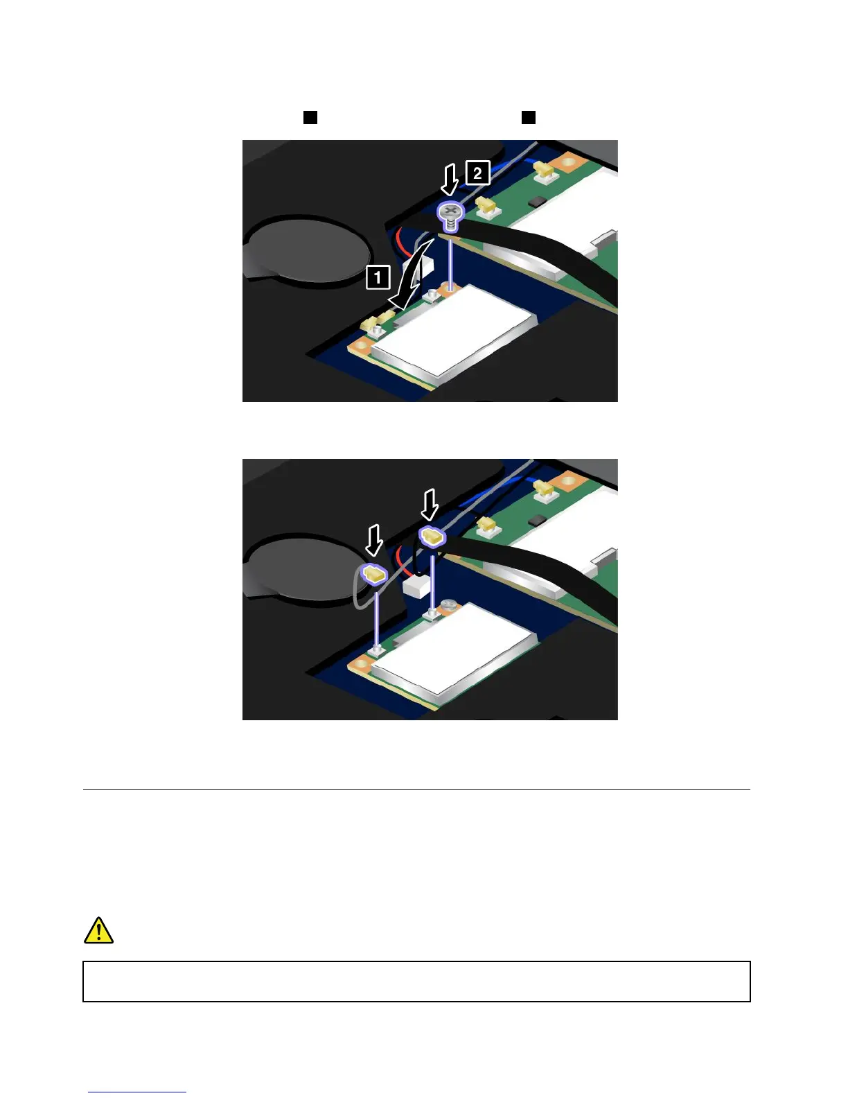 8.ConnectthecablestothenewPCIExpressMiniCard.Besuretoattachthegraycabletotheconnector