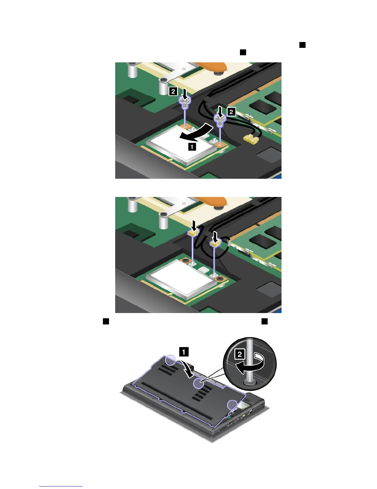 8.ConnecttheantennacablestothenewPCIExpressMiniCardasshowninthedrawing.