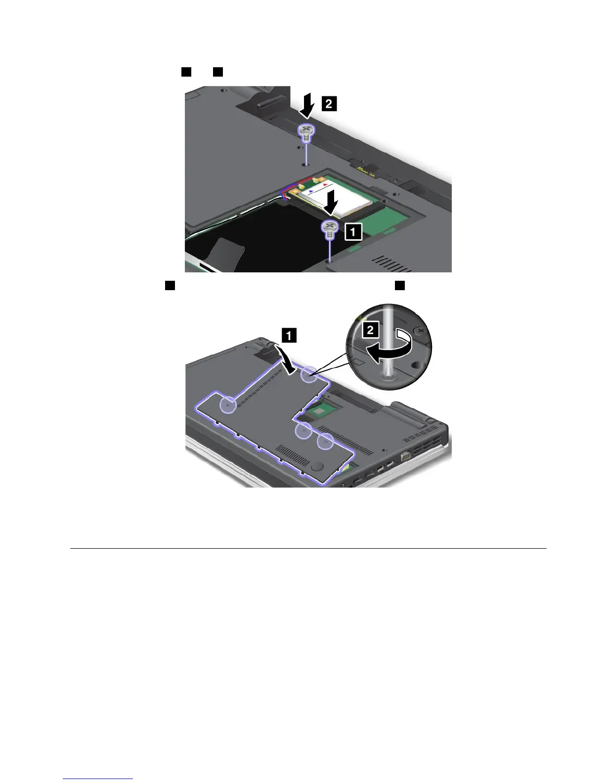 5.Attachthecover1,pivotitdownwards,andthentightenthescrews2.