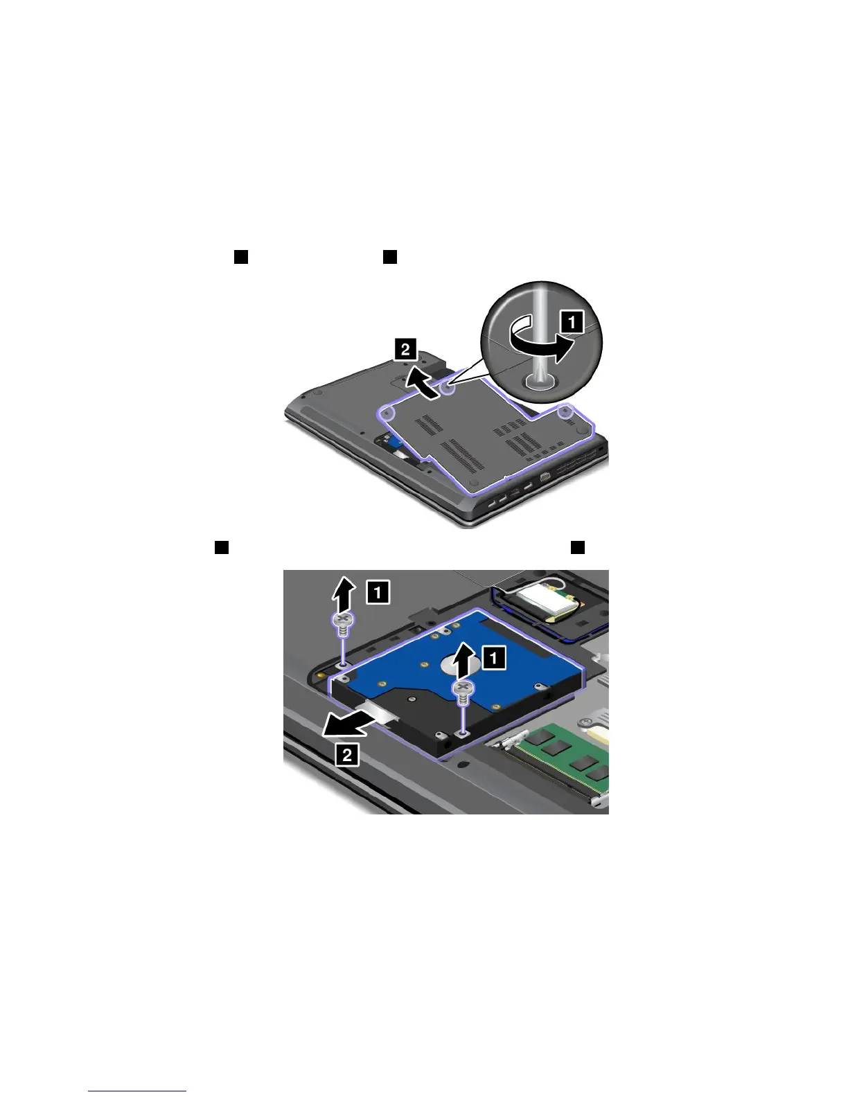 5.Retirezlesvis1,puisfaitesglisserl'unitédedisquedurversl'extérieur2.